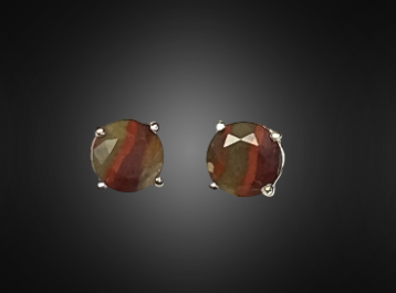 Faceted KY Agate solitaires set in 14K white gold. The solitaires measure 7.5 mm each and features the colors red, orange, and yellow.